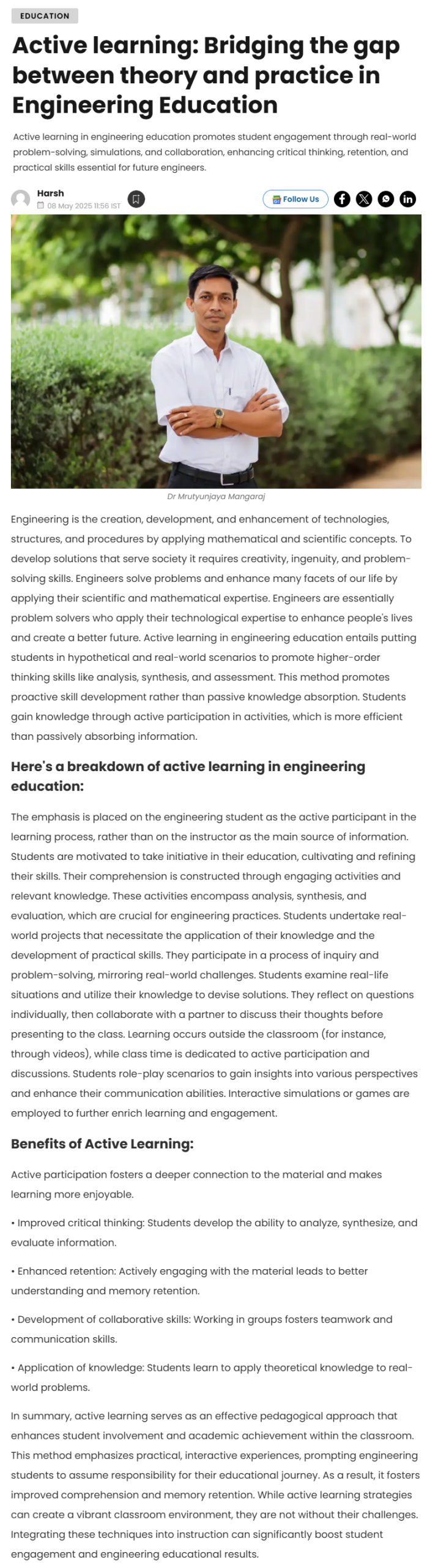 During the discussion, Prof Ramamurty emphasized the importance of research collaboration between faculty members from different research areas and about utilizing expertise to achieve significant scientific output.