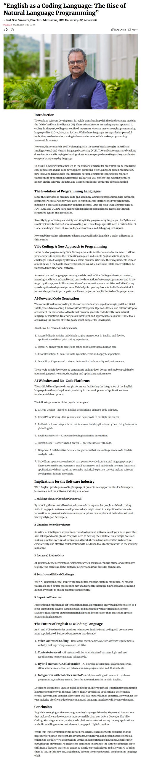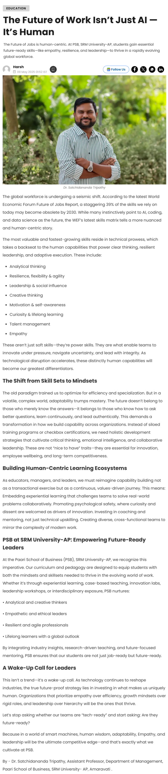 An interactive session between Prof U Ramamurty, President Chair Professor, School of Mechanical & Aerospace Engineering at Nanyang Technological University (NTU), Singapore, and the faculty members of SRM University – AP, Andhra-Pradesh was held on Monday.